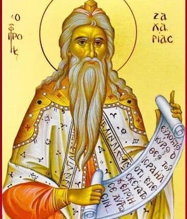 استشهد زكريا الكاهن أبو القديس يوحنا المعمدان. وكان من فرقة أَبِيَّا. وكانت امرأته أليصابات «وكان كلاهما بارين أمام الله سالكين في جميع وصايا الرب وأحكامه بلا لوم، ولم يكن لهما ولد إذ كانت أليصابات عاقراً وكان كلاهما متقدمين في أيامهما» (لو ١: ٦، ٧) وبينما كان يرفع البخور على المذبح ظهر له جبرائيل الملاك وبشره بميلاد ابنه يوحنا، ولما لم يصدق كلام الملاك، أوجب عليه الصمت حتى تمت معجزة ميلاد الطفل. حينئذ تكلم وسبَّح الله وتنبأ عن يوحنا كسابق للسيد المسيح الآتي لخلاص العالم.