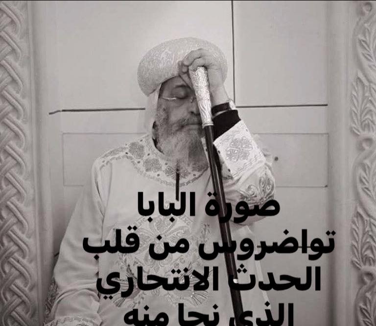 الصورة المنشوره فى الموضوع للبابا تواضروس يوم الحادثة الارهابية التى نجا منها وتظهر  وقائع العمل الارهابى على ملامحه